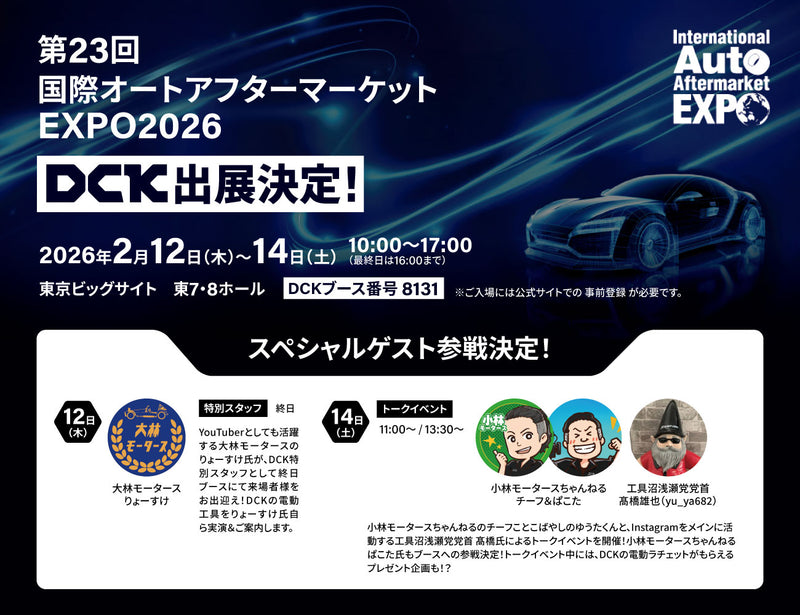 - 2026.01.13 第23回 オートアフターマーケットEXPO2026初出展!人気インフルエンサーがスペシャルゲス...